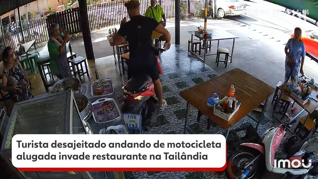 VÍDEO: Turista desajeitado invade restaurante com motocicleta alugada na Tailândia | Turismo e Viagem